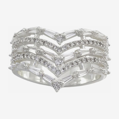 Sparkle Allure Faux Stacked Womens Cubic Zirconia Pure Silver Over Brass Chevron Cocktail Ring