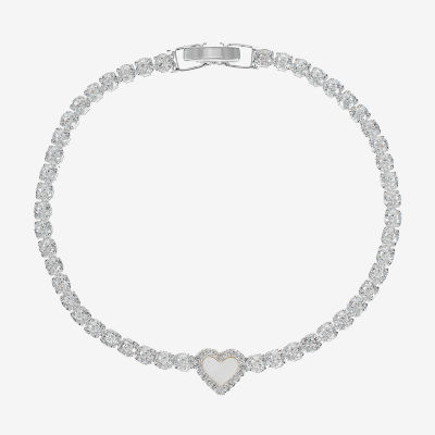 Sparkle Allure Halo Womens Cubic Zirconia Pure Silver Over Brass Heart 7.5 Inch Tennis Bracelet