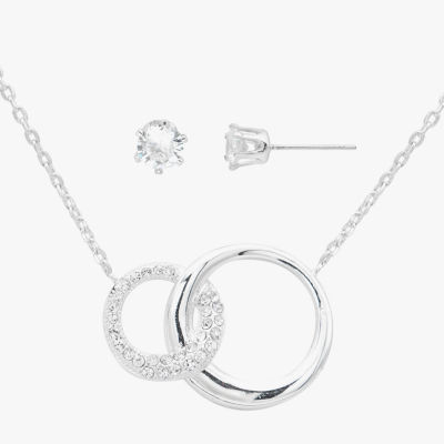 Sparkle Allure Interlocking Circle Womens Crystal Pure Silver Over Brass 2-pc. Jewelry Set