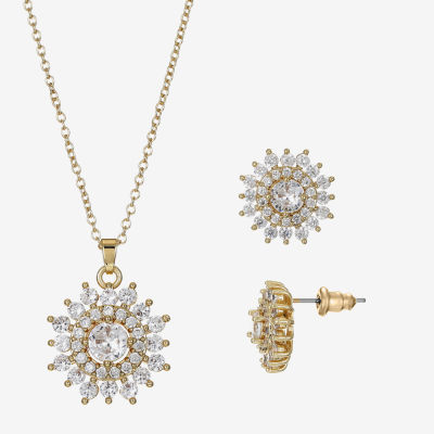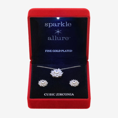 Sparkle Allure Light Up Box Womens Cubic Zirconia 14K Gold Over Brass Round Sunburst 2-pc. Jewelry Set