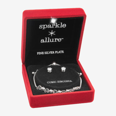 Sparkle Allure Light Up Box Womens Cubic Zirconia Pure Silver Over Brass Heart 2-pc. Jewelry Set