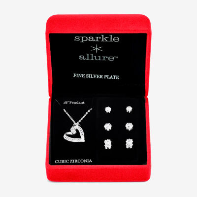 Sparkle Allure Light Up Box Womens Cubic Zirconia Pure Silver Over Brass Heart 4-pc. Jewelry Set