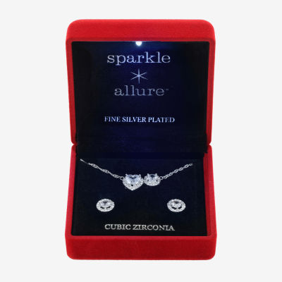 Sparkle Allure Light Up Box Womens Cubic Zirconia Pure Silver Over Brass Heart Round 2-pc. Jewelry Set