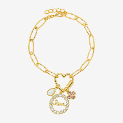 Sparkle Allure Love Carabiner Womens Pink Cubic Zirconia 14K Gold Over Brass Flower Charm Bracelet