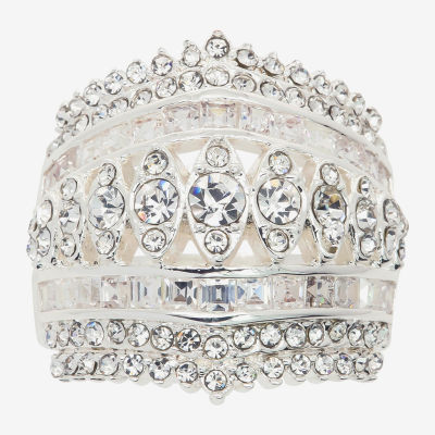 Sparkle Allure Multi Row Dome Womens Cubic Zirconia Pure Silver Over Brass Cocktail Ring