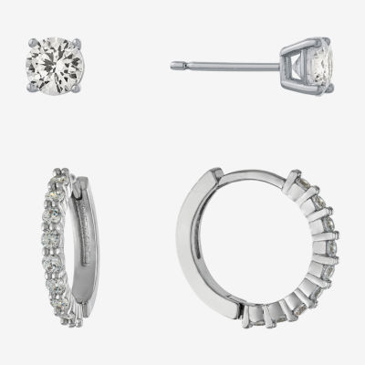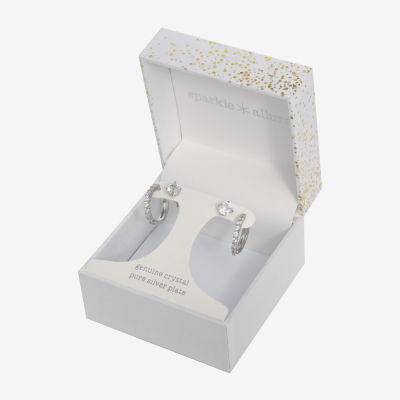 Sparkle Allure Stud & Huggie Hoop Womens Crystal 2 Pair Earring Set