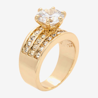 Sparkle Allure Three Row Womens Cubic Zirconia 14K Gold Over Brass Round Engagement Ring