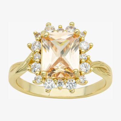 Sparkle Allure Twisted Womens Champagne Cubic Zirconia 14K Gold Over Brass Halo Cocktail Ring