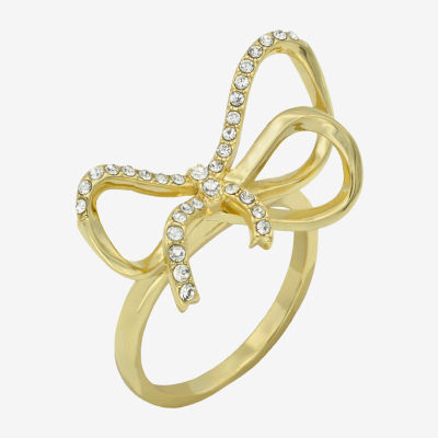Sparkle Allure Womens Crystal 14K Gold Over Brass Bow Cocktail Ring
