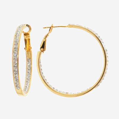 Sparkle Allure Womens Crystal 24K Gold Over Brass 33mm Hoop Earrings