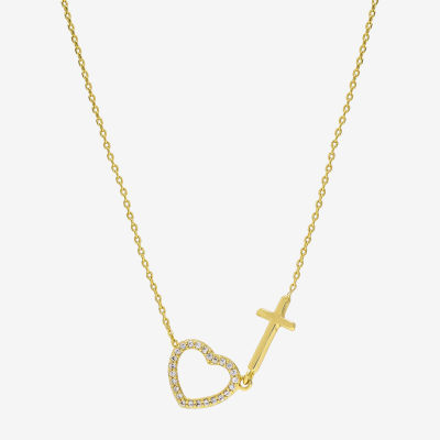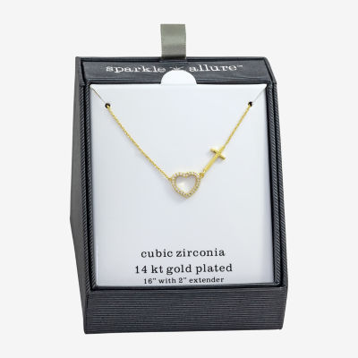 Sparkle Allure Womens Cubic Zirconia 14K Gold Over Brass Cross Heart 16 Inch Pendant Necklace