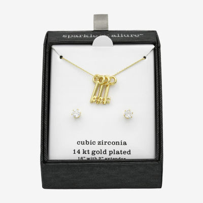 Write a ReviewAsk a Question0580685Sparkle Allure Womens Cubic Zirconia 14K Gold Over Brass Keys 2-pc. Jewelry Set12345678Add to CartProduct DetailsShipping & Returns Shop The LookReviewsQuestions & AnswersAdd To Cart