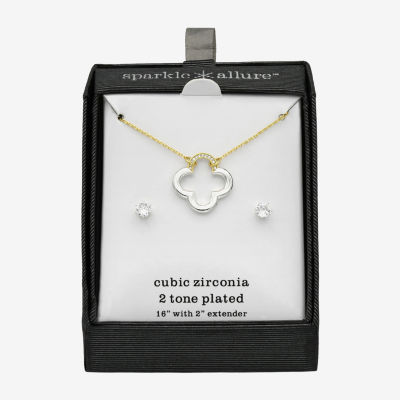 Sparkle Allure Womens Cubic Zirconia 14K Gold Over Brass Pure Silver Over Brass Clover 2-pc. Jewelry Set