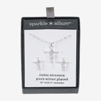 Sparkle Allure Womens Cubic Zirconia Pure Silver Over Brass Cross 2-pc. Jewelry Set