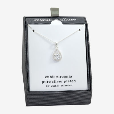 Sparkle Allure Womens Cubic Zirconia Pure Silver Over Brass Pear 16 Inch Pendant Necklace
