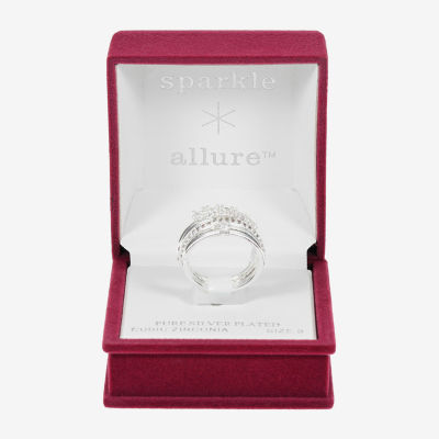 Sparkle Allure Womens Cubic Zirconia Pure Silver Over Brass Ring Set