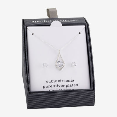 Sparkle Allure Womens Cubic Zirconia Pure Silver Over Brass Round 2-pc. Jewelry Set