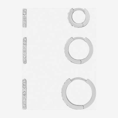 Sparkle Allure Womens White Crystal 3 Pair Earring Set