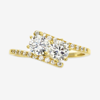 Sparkle Allure Womens White Cubic Zirconia 14K Gold Over Brass Hypoallergenic Bypass Engagement Ring