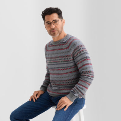 St. John's Bay Fairisle Mens Crew Neck Long Sleeve Pullover Sweater