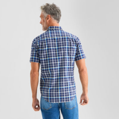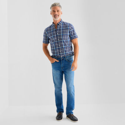 St. John's Bay Stretch Poplin Mens Short Sleeve Classic Fit Button-Down Shirt