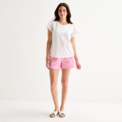 St. John's Bay Womens Crew Neck Short Sleeve Blouse