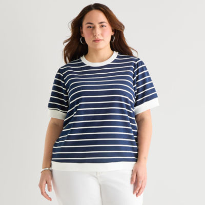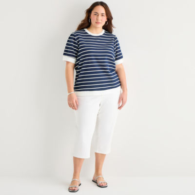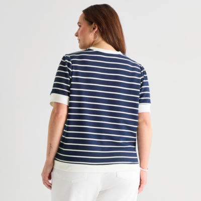 new!St. John's Bay Womens Plus Crew Neck Short Sleeve Blouse