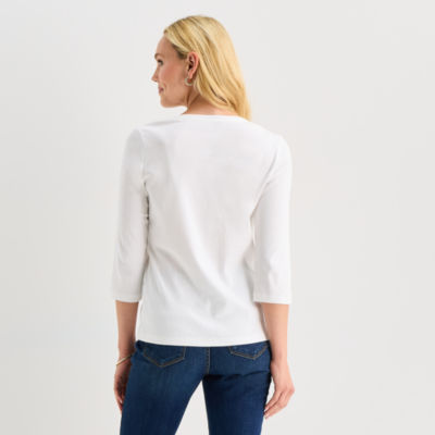 St. John's Bay Womens Tall V Neck 3/4 Sleeve T-Shirt