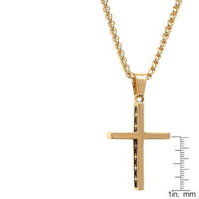 Steeltime Mens 18K Gold Over Stainless Steel Cross Hypoallergenic 24 Inch Pendant Necklace
