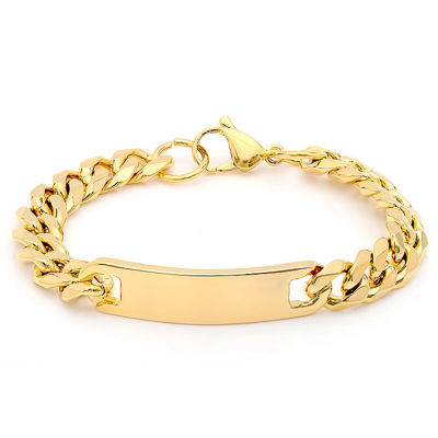 Steeltime Mens 18K Gold Over Stainless Steel Solid Curb Id Bracelet