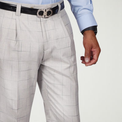 Steve Harvey Mens Classic Fit Windowpane Pleated Front Suit Pant
