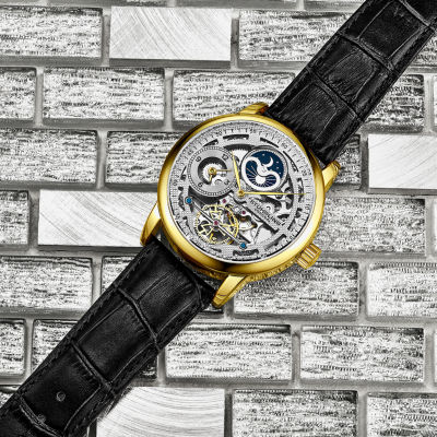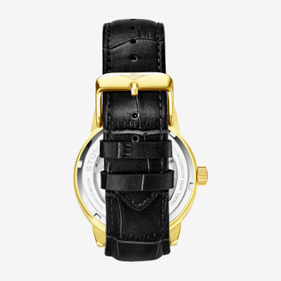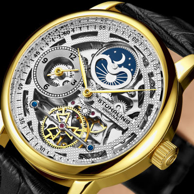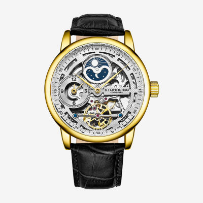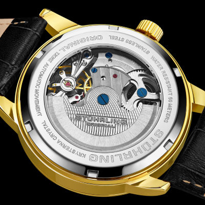 Stuhrling Mens Automatic Black Leather Strap Watch 3917 2