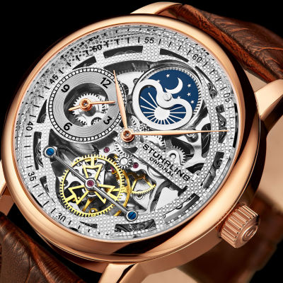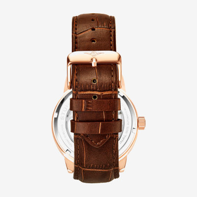 Stuhrling Mens Automatic Brown Leather Strap Watch 3917 3