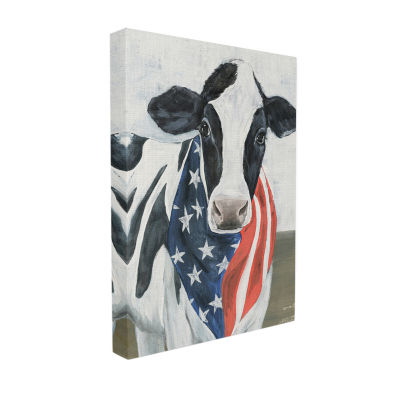 Stupell Industries Farm Cow American Flag Animal Canvas Art