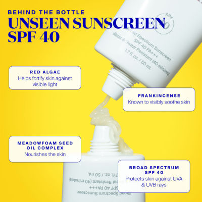 4397 Reviews1 Questions & 1 Answers9601853Supergoop Unseen Sunscreen Spf 40 1.7ozShop all Supergoop!123456Add to CartSkincare AdvisorFind solutions for your skin typeFeaturesFsa Hsa EligibleFragrance FreeParaben-freeSulfate-freePhthalate FreeDrySensitiveOilyProduct DetailsShipping & Returns Shop the CollectionSupergoop Unseen Sunscreen Spf...Grwm: Jcpenney Beauty Skincare...Hanskin Hyaluron Moisture Crea...NCLA Beauty Sugar Sugar Lip Sc...PSA Reset Acai & Manuka Honey ...Rodial Dragons Blood Sculpting...Neogen Probiotics Double Actio...Buttah Skin Vitamin C SerumShop The LookReviews(4397)Questions & AnswersAdd To Cart