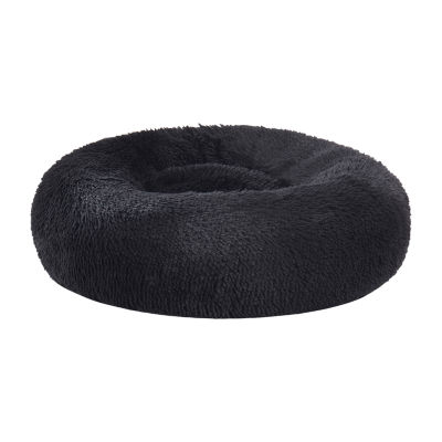 Sweet Home Collection 20in Black Round Calming Faux Fur Donut Pet Bed