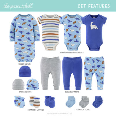 182 ReviewsAsk a Question3204765The Peanutshell Blue Dino Baby Boys 16-pc. Baby Clothing Set12345678Add to CartProduct DetailsSize ChartShipping & Returns The Peanutshell Baby Size GuideShop The LookReviews(182)Questions & AnswersAdd To Cart