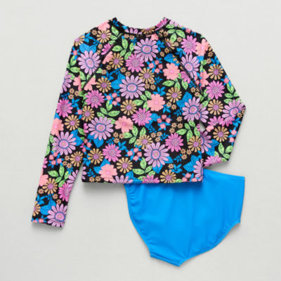 new!Thereabouts Little & Big Kid Girls Floral 2-pc. Rash Guard Set