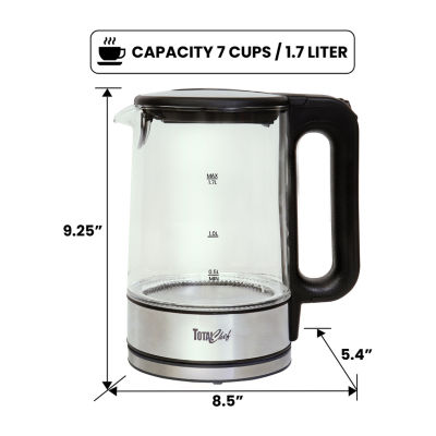 1 ReviewsAsk a Question7806768Total Chef Cordless Electric Glass Kettle with LEDModel #TCTKG17123Add to CartProduct DetailsShipping & Returns Reviews(1)Questions & AnswersAdd To Cart