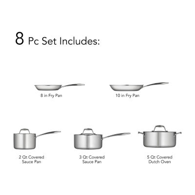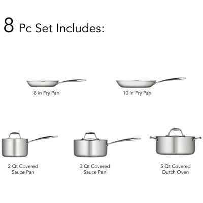 113 Reviews3 Questions & 3 Answers7820256Tramontina Gourmet 8-pc. Tri-Ply Clad 18/10 Stainless Steel Induction-Ready Cookware SetShop all TramontinaModel #80116/247DS12345678Add to CartProduct DetailsShipping & Returns Reviews(113)Questions & AnswersAdd To Cart