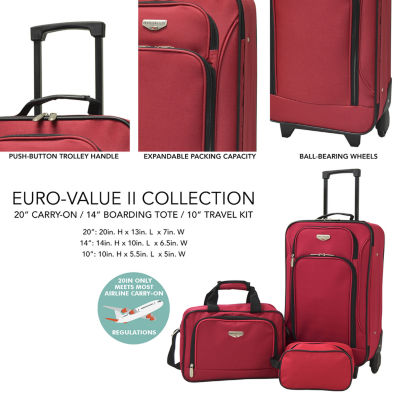 4 Reviews3 Questions & 3 Answers0470671ColorTravelers Club Euro Value Ll 20" Lightweight Luggage12345678Add to CartFeaturesLightweight2 YearProduct DetailsShipping & Returns Reviews(4)Questions & AnswersAdd To Cart