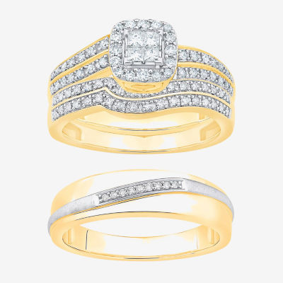 Unisex Adult 1/2 CT. T.W. Natural White Diamond 10K Two Tone Gold Side Stone Halo Bridal Set