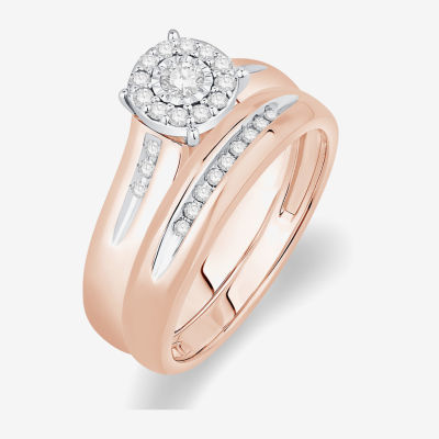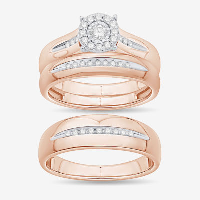 Unisex Adult 1/3 CT. T.W. Natural White Diamond 10K Rose Gold Round Halo Side Stone Ring Set