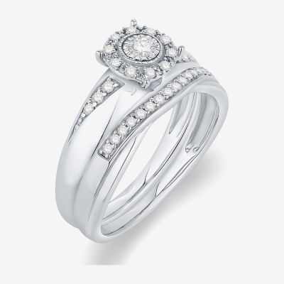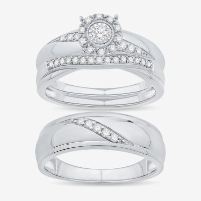 Unisex Adult 1/3 CT. T.W. Natural White Diamond 10K White Gold Round Halo Side Stone Ring Set