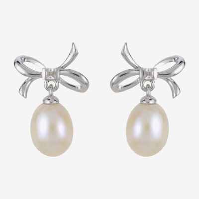 White Cultured Freshwater Pearl Sterling Silver 16mm Bow Stud Earrings