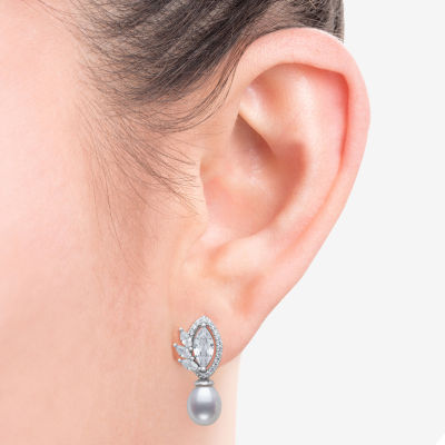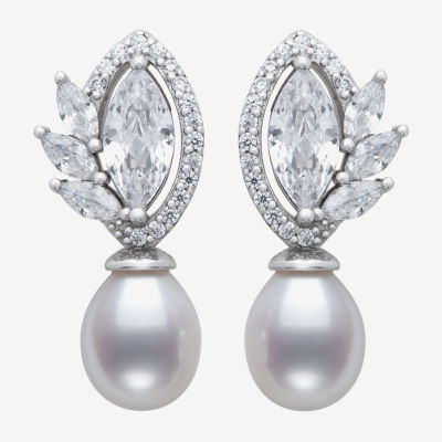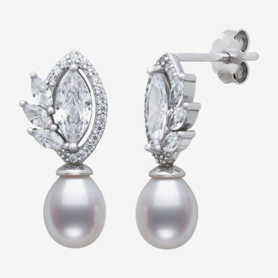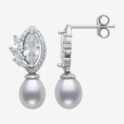 Womens White Cultured Freshwater Pearl Sterling Silver Marquise Drop Earrings