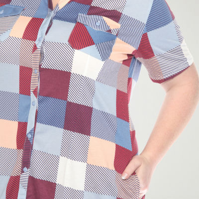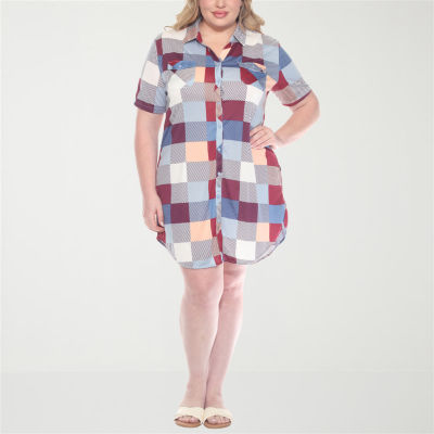 White Mark Womens Plus Short Sleeve Plaid Shirt Dress