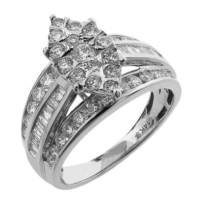 Womens 1 1/2 CT. T.W. Natural White Diamond 10K Gold Marquise Side Stone Engagement Ring