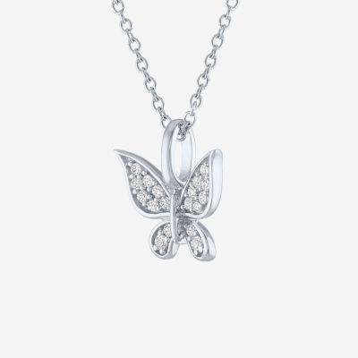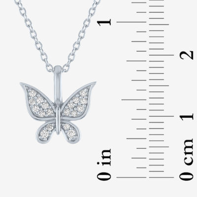 Womens 1/10 CT. T.W. Natural White Diamond Sterling Silver Butterfly 18 Inch Pendant Necklace