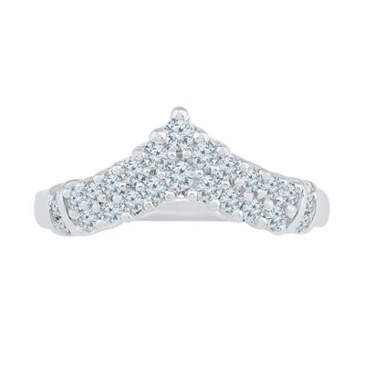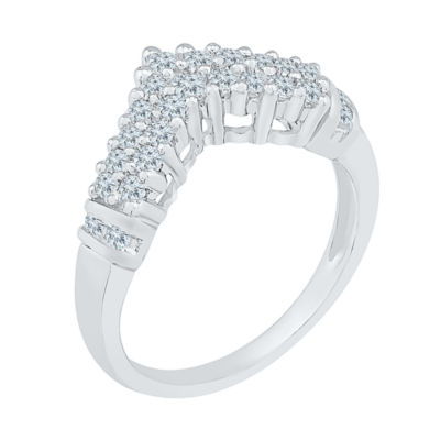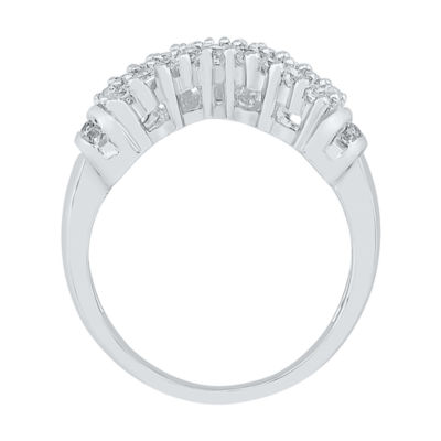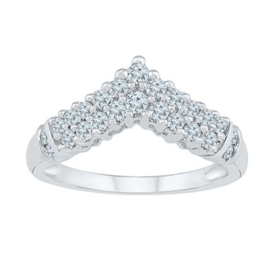 Womens 2MM 1/2 CT. T.W. Natural White Diamond 10K White Gold Chevron Cluster Band